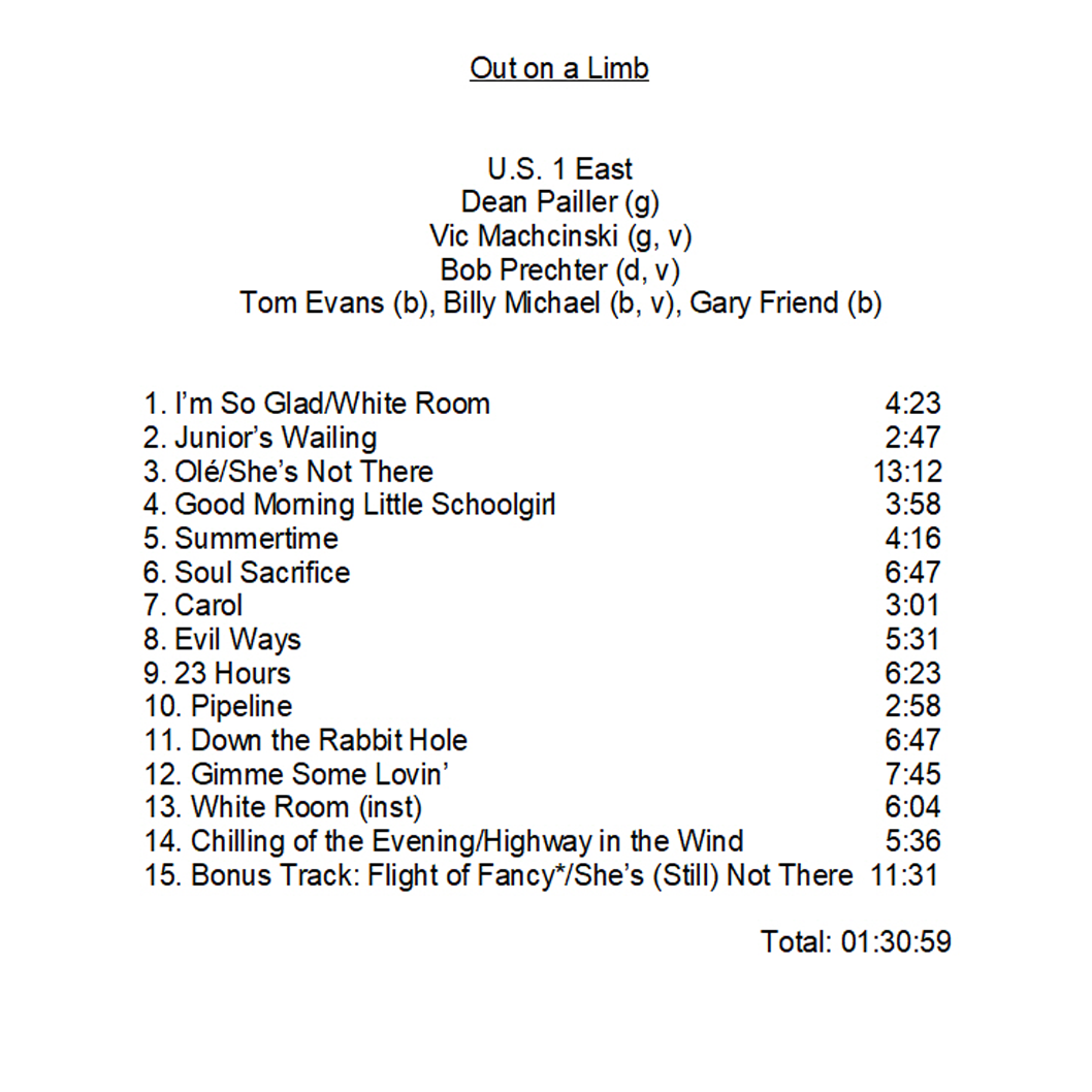 Presented here are selections from 1970-71. Tracks marked with an asterisk* are original compositions. Crowd noise and the occasional off note confirm these are all live recordings. For the most part, the psychedelic leads are Dean’s, and the bluesy leads are Vic’s.